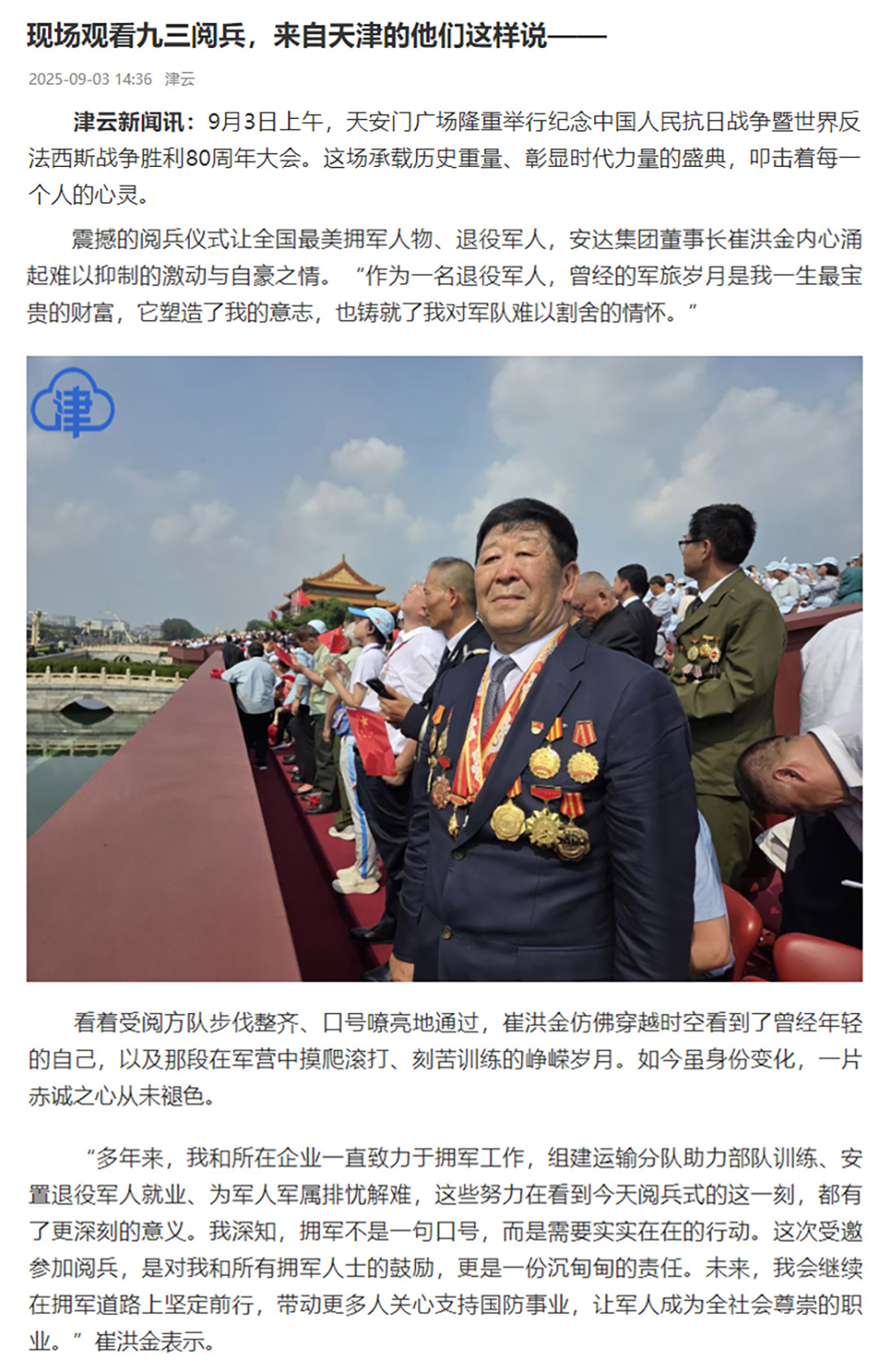 崔洪金參加9.3閱兵 天津《今晚報》專(zhuān)題...
