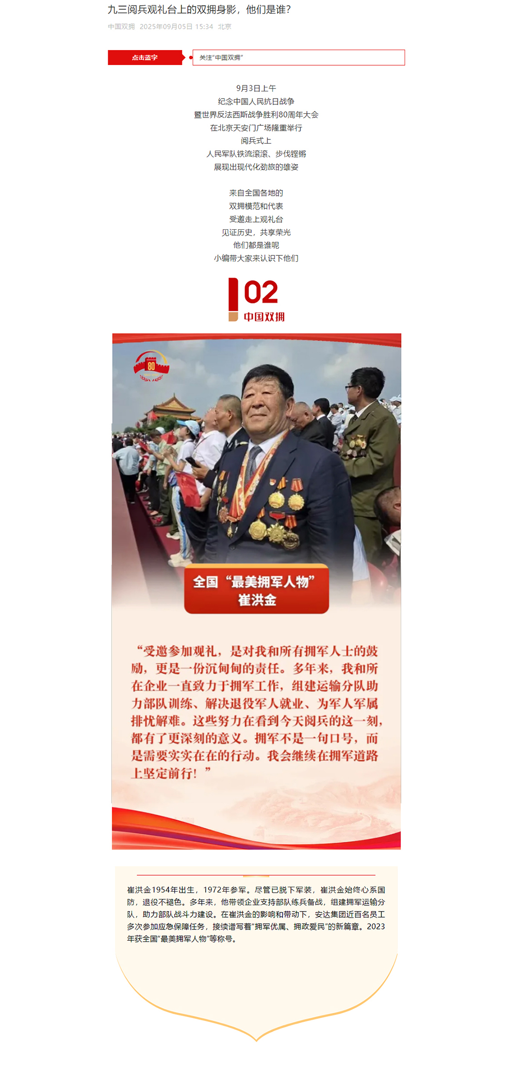 崔洪金參加9.3閱兵榮登《中國雙擁》雜志